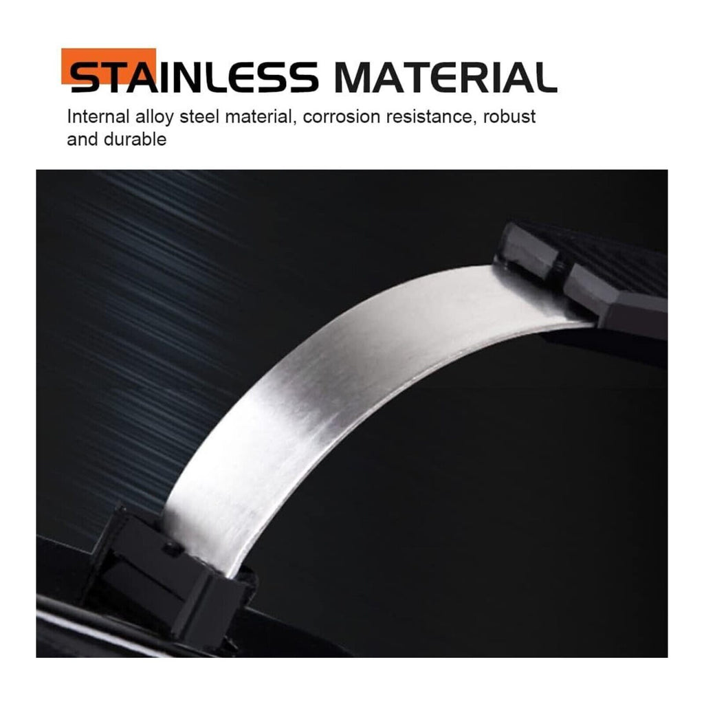 - Reinforced stainless strap in a protective plastic coating to prevent scratching.
