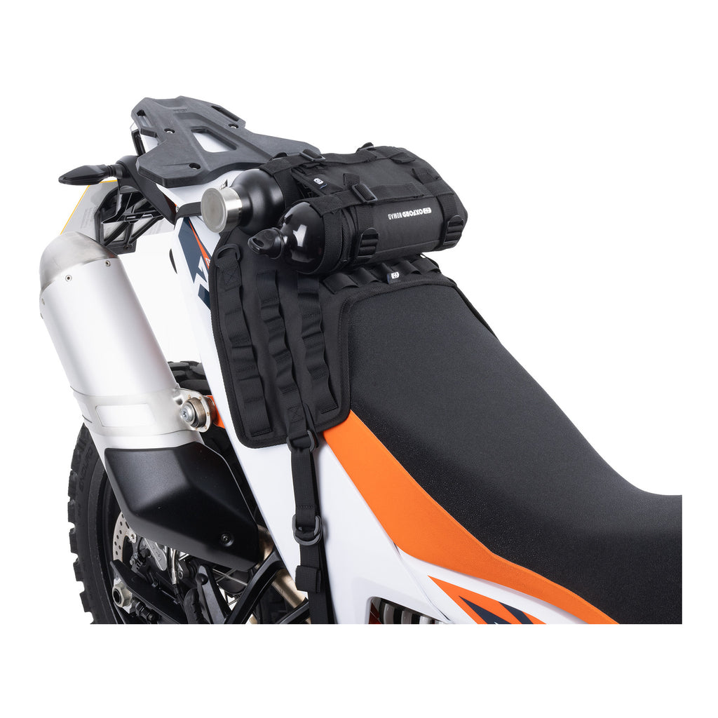 The Oxford Nomad Bottlestash XL is designed to carry two containers; both the Oxford Fuel Flask and the Oxford Aqua Insulated Flask.