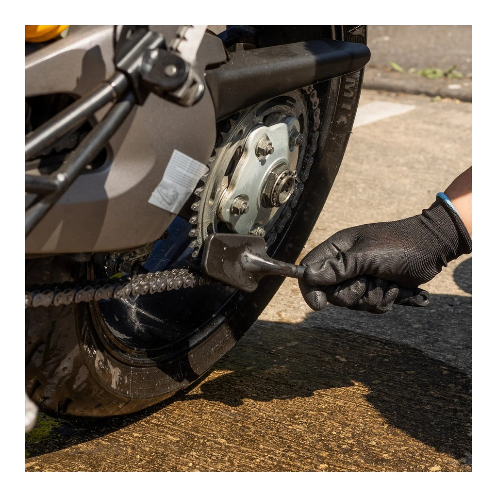 The Sprocket Brush Pro is engineered to effectively remove grime from both the rear sprocket and front sprocket housing, helping to keep your drivetrain clean and running smoothly. Its tapered bristles make it ideal for reaching tight, dirty areas like brake callipers and the swingarm.